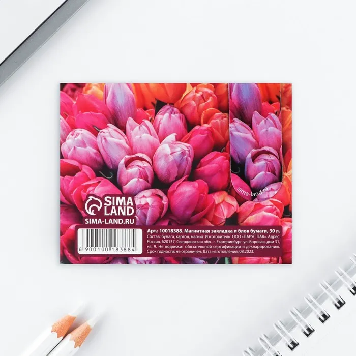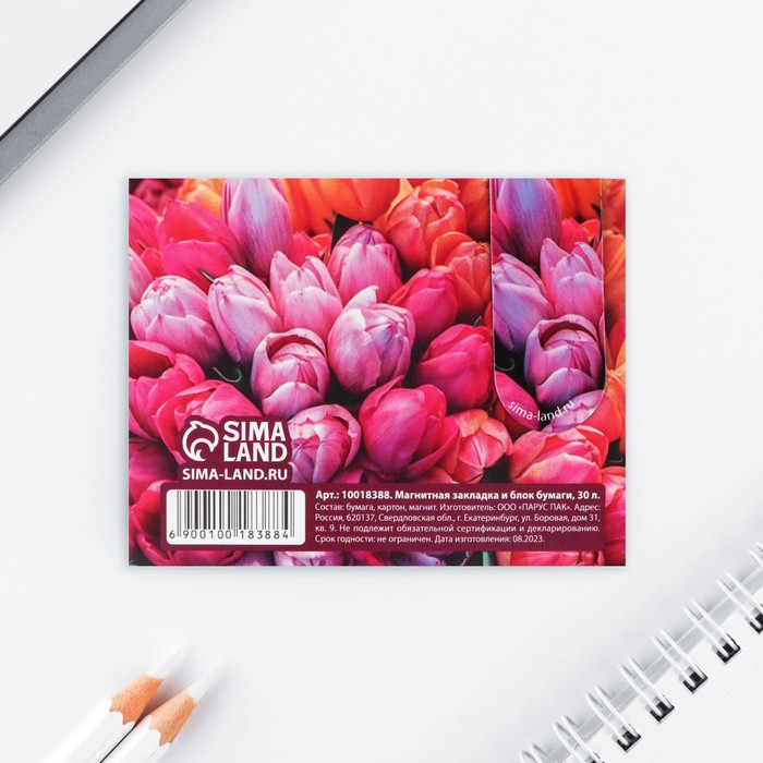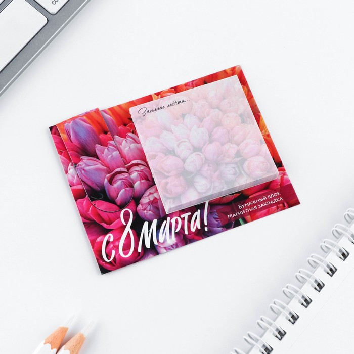 Магнитная закладка и блок бумаги, 30 л. «8 марта: Тюльпаны» — Характеристики