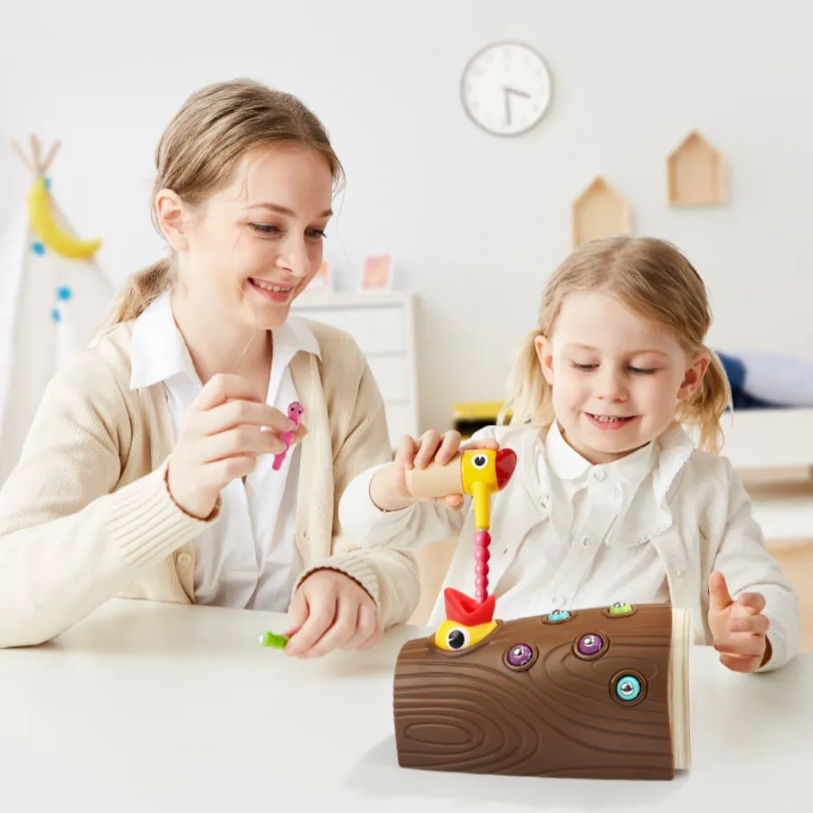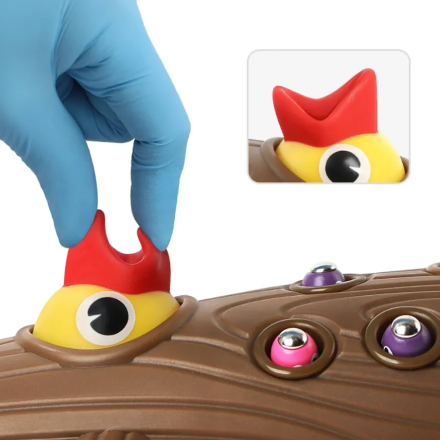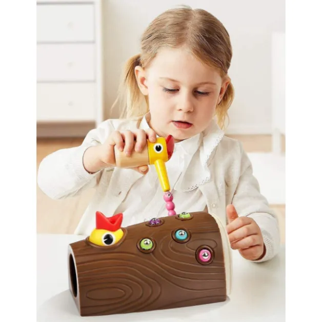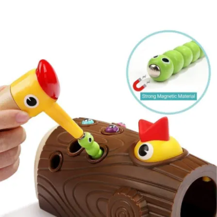 Этот птенец очень проголодался, а черви хитрецы все спрятались. Маме птичке нужно накормить своего малыша. Надо помочь ей в этом. Каким образом, все очень просто. Каждый червячок имеет магнитную головку и спрятан в основу дерева в своей норке. На клюве тоже магнитная основа, с помощью которой можно вытянуть червячка. Магниты плотно соединяются и поэтому червей легко добыть из дерева. Ну что же вперед! Малышу будет интересно и весело проводить время. Игрушка изготовлена из высококачественного биопластика и деревянных деталей из натуральной древесины лиственных пород, с нанесением нетоксичной краски на водной основе, что делает их безопасными для вас и вашего ребенка. Игра развивает мелкую моторику, координацию движений, гибкость кисти, глазомер, усидчивость и концентрацию над результатом. Продукция изготовлена в соответствии с ГОСТ EN 71-1-201, а также игрушки от TopBright прошли американские испытания ASTM и СЕ и на 100% соответствует стандартам безопасности игрушек.