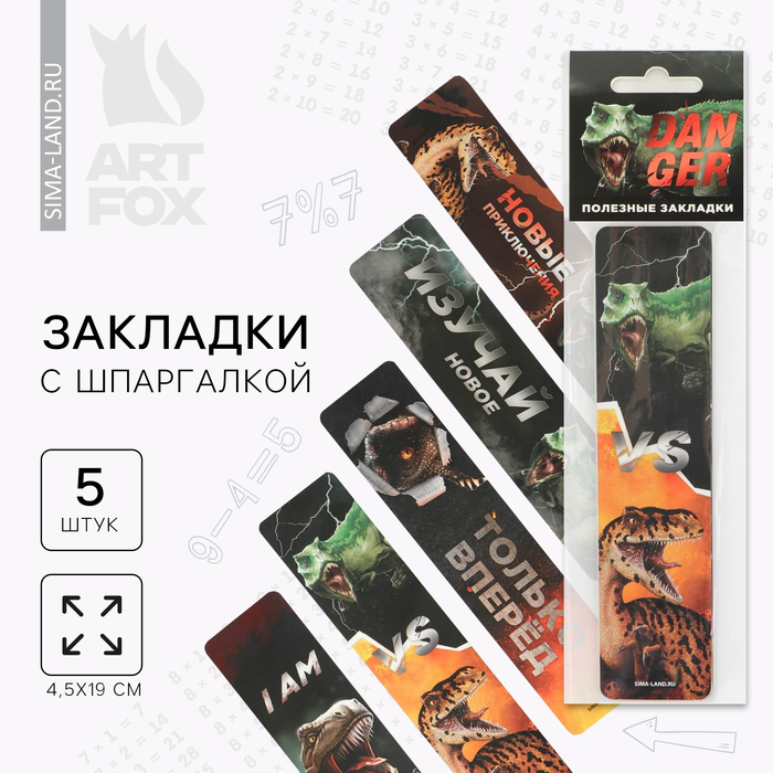 Закладки картонные, шпаргалки 5 шт «Динозавр»