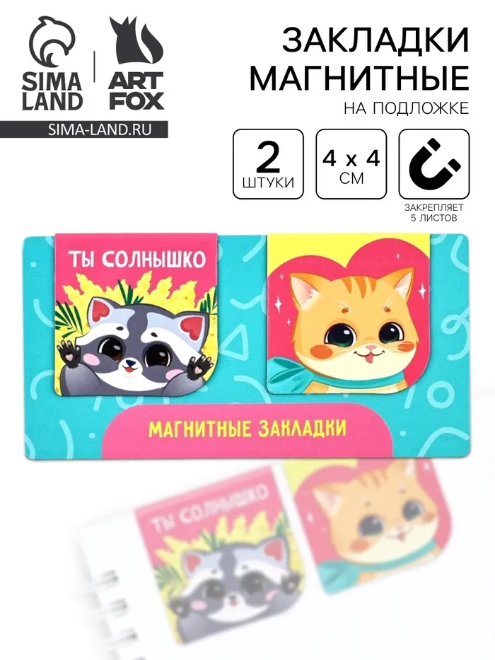 Магнитные закладки 2 шт., 4×4 см, на подложке «Мечтай читай люби» — Характеристики