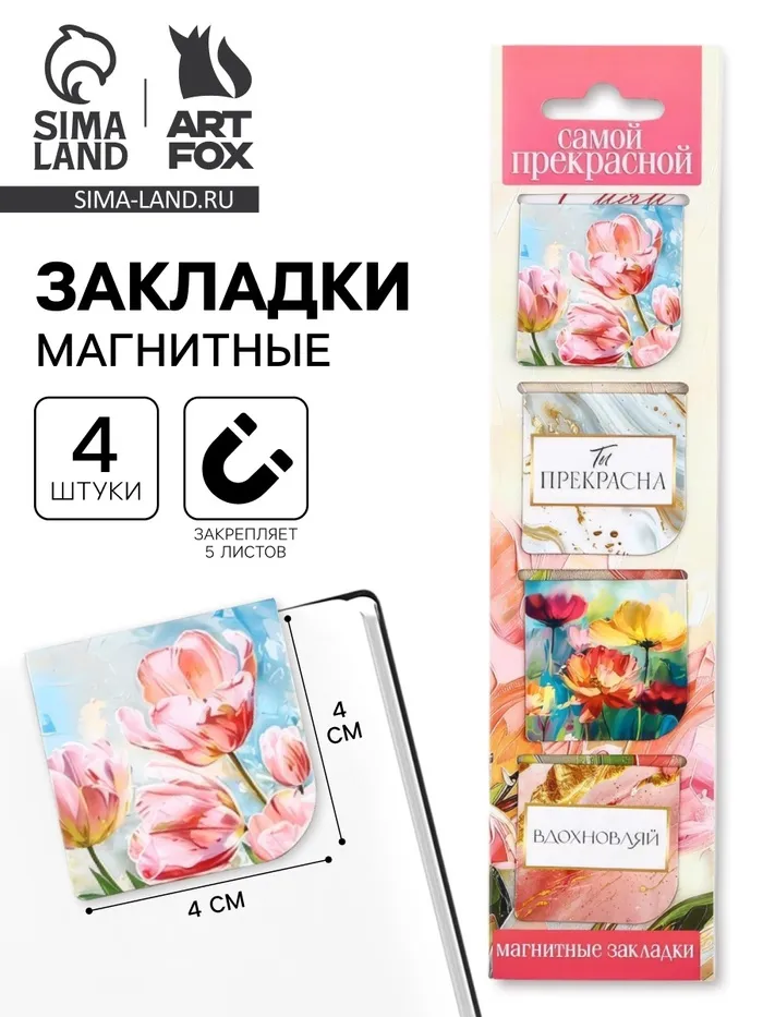 Магнитные закладки 4 шт. в открытке «Самой прекрасной» — Характеристики