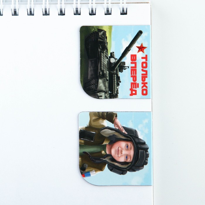 Магнитные закладки для книг, 2 шт., 4×4 см, на подложке «23 февраля: Только вперед»