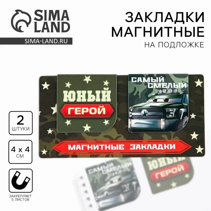Магнитные закладки для книг, 2 шт., 4×4 см, на подложке «Юный герой»