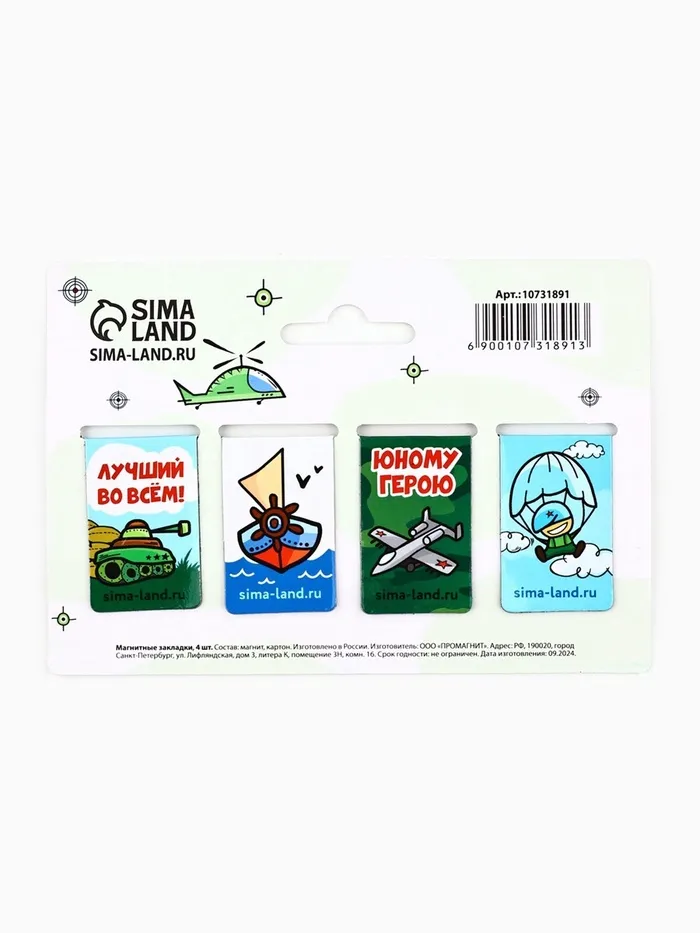 Магнитные закладки для книг, 4 шт. «23 февраля: Защитнику отечества» — Характеристики