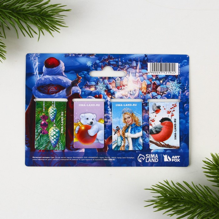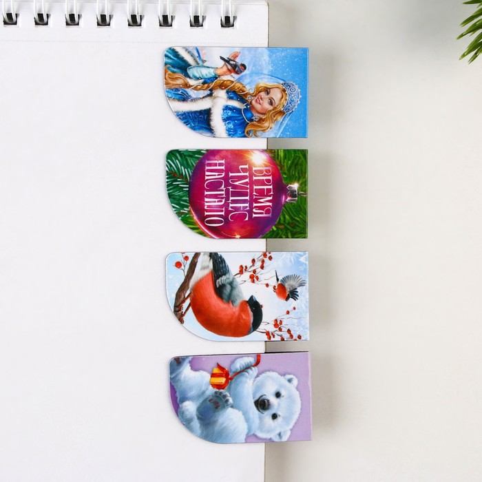 Магнитные закладки для книг, 4 шт., мини «Счастливого нового года»