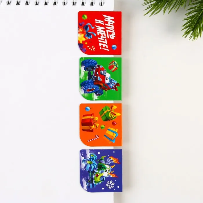 Магнитные закладки для книг, 4 шт. на открытке «Газуй в новый год»