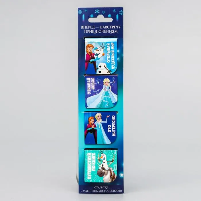 Магнитные закладки для книг, 4 шт. на открытке «Навстречу приключениям», Холодное сердце — Характеристики