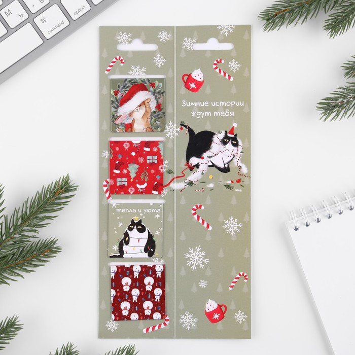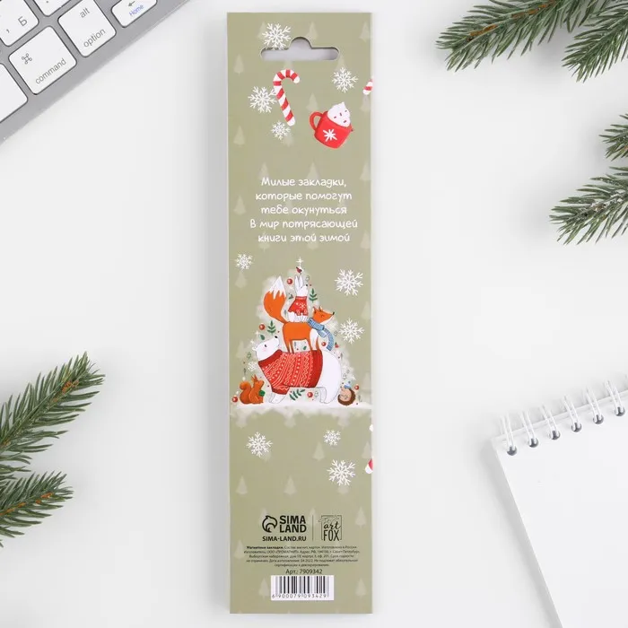 Магнитные закладки для книг, 4 шт. на открытке «Новый год: Для уютного чтения» — Характеристики