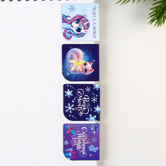 Магнитные закладки для книг, 4 шт. на открытке «Волшебные»