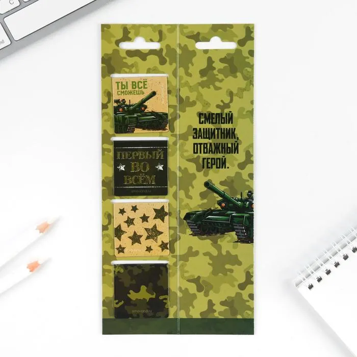 Магнитные закладки для книг, 4 шт. в открытке «Настоящему герою» — Характеристики