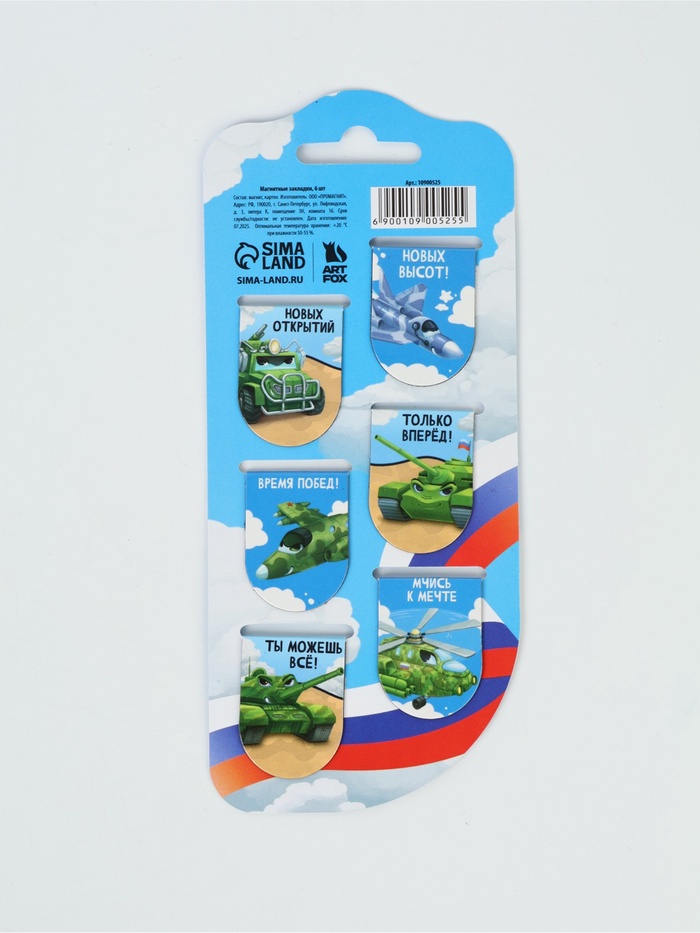 Магнитные закладки для книг, 6 шт. «Юному защитнику» — Характеристики