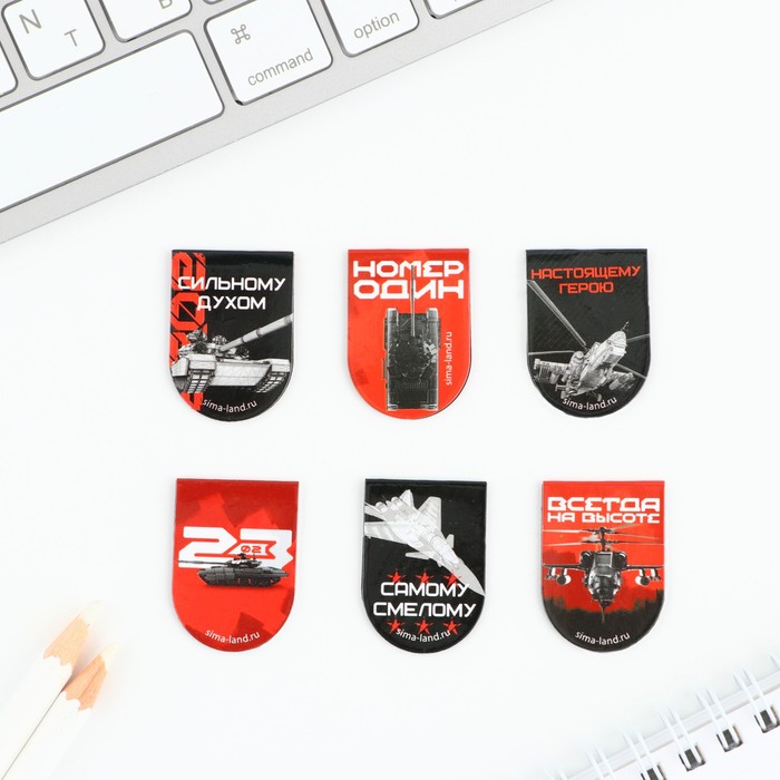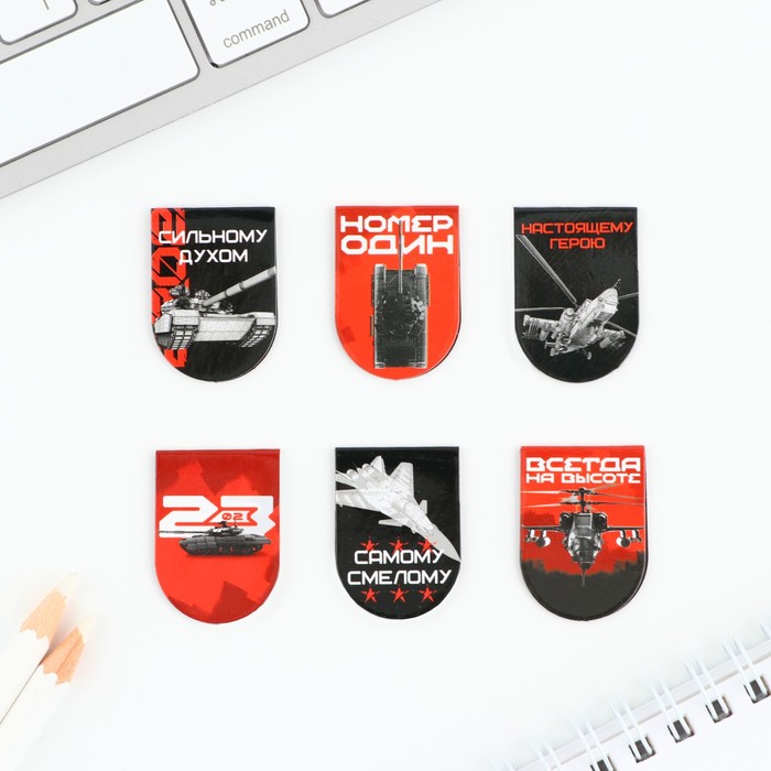 Магнитные закладки для книг, 6 шт. на подложке «23 февраля: Звезда»
