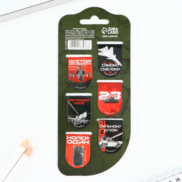 Магнитные закладки для книг, 6 шт. на подложке «23 февраля: Звезда» — Характеристики