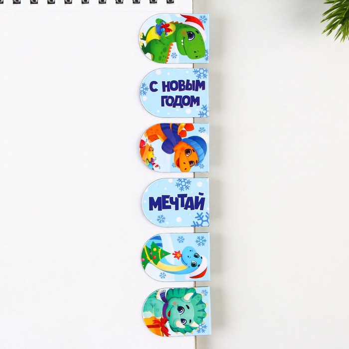 Магнитные закладки для книг, 6 шт. на подложке «Новый год: Поверь в мечту»