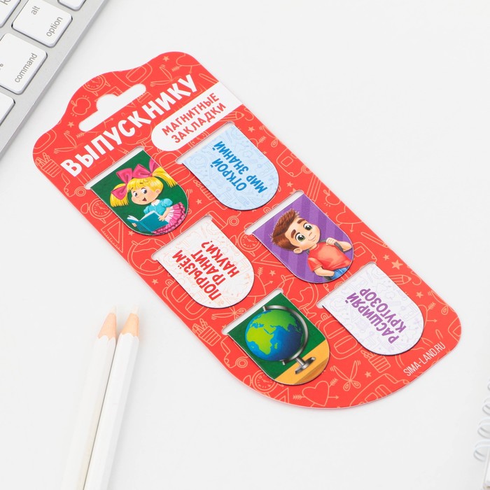 Магнитные закладки для книг, 6 шт. на подложке «Выпускнику» — Характеристики
