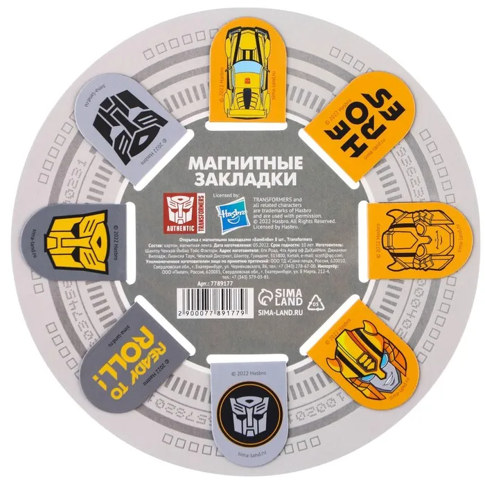 Магнитные закладки для книг, 8 шт. на открытке «Настоящему герою!», Трансформеры — Характеристики