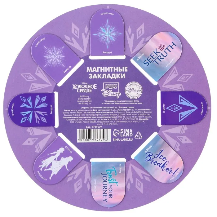 Магнитные закладки для книг, 8 шт. на открытке «Самой красивой!», Холодное сердце — Характеристики