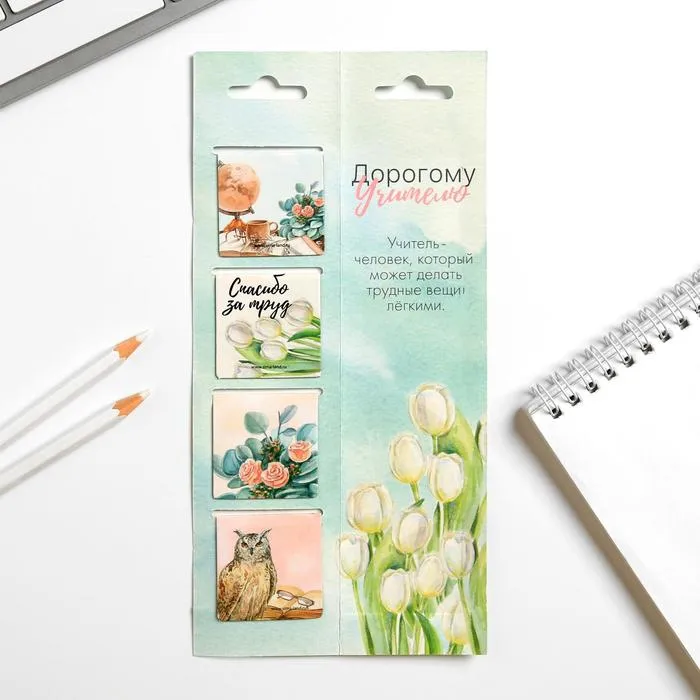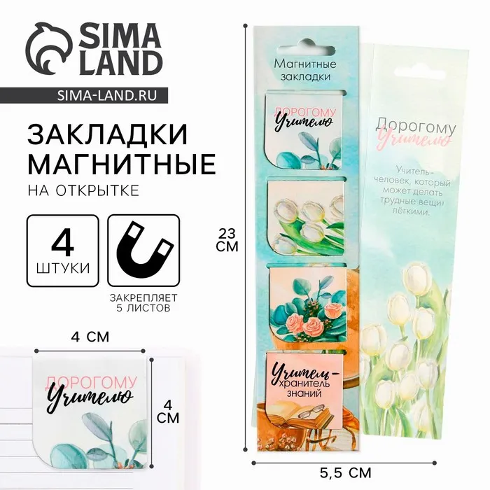 Магнитные закладки для книг в открытке «Дорогому учителю!», 4 шт. — Характеристики
