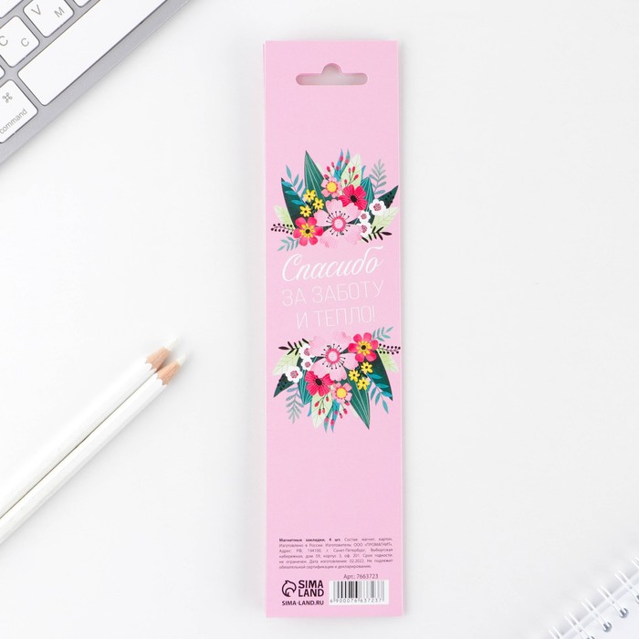 Магнитные закладки для книг в открытке «Любимый воспитатель» 4 шт. — Характеристики