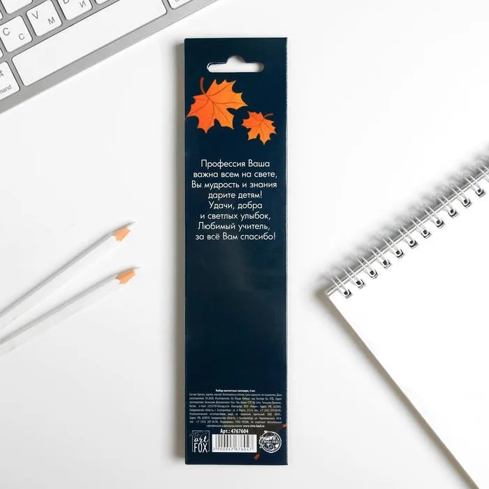 Магнитные закладки для книг в открытке «С днем учителя», 4 шт. — Характеристики