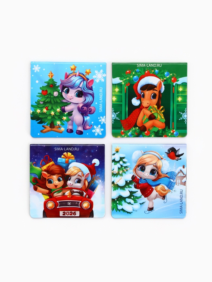Магнитные закладки «Лошадка», на открытке, 4 шт.