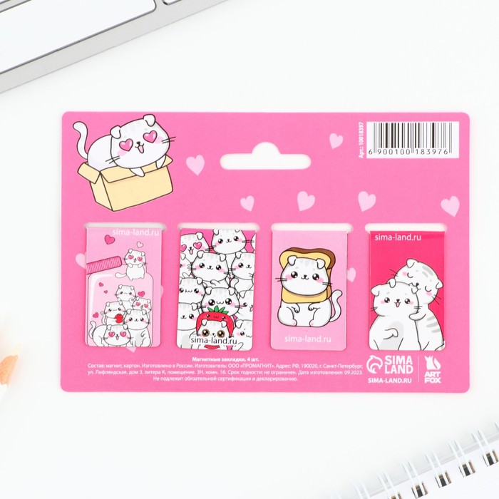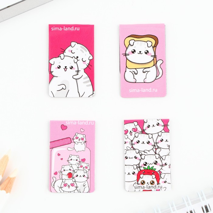 Набор магнитных закладок для книг Calligrata 6 штук, "Котики", МИКС