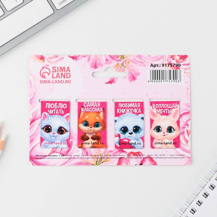 Магнитные закладки мини «Зверята. 8 марта», 4 шт. — Характеристики