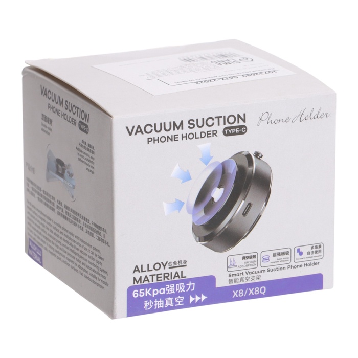 Главным преимуществом этого держателя является его автоматическая вакуумная система, которая при соприкасновении с поверхностью крепко присасывается к ней.