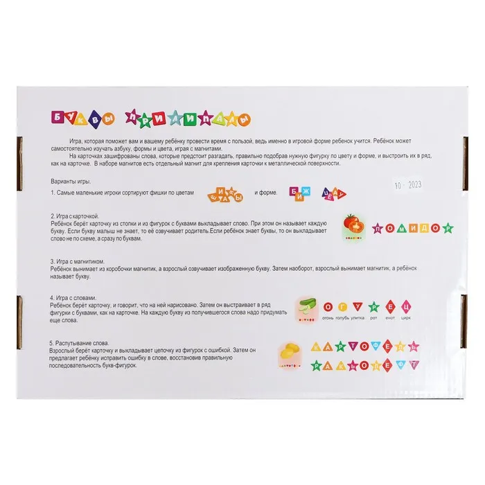 «Буквы прилипалы. Овощи» — идеальный выбор для дошкольников 3–7 лет, которые начинают изучать буквы и звуки. Набор подходит как девочкам, так и мальчикам. Он превращает обучение в увлекательную игру, где каждый шаг приближает ребёнка к первому самостоятельному чтению.