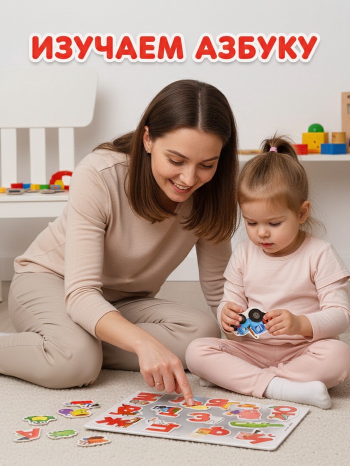 - Крупный размер для детских рук: элементы достаточно большие, чтобы ребёнок мог легко брать и перемещать их. Шрифт чёткий и хорошо читается на расстоянии.