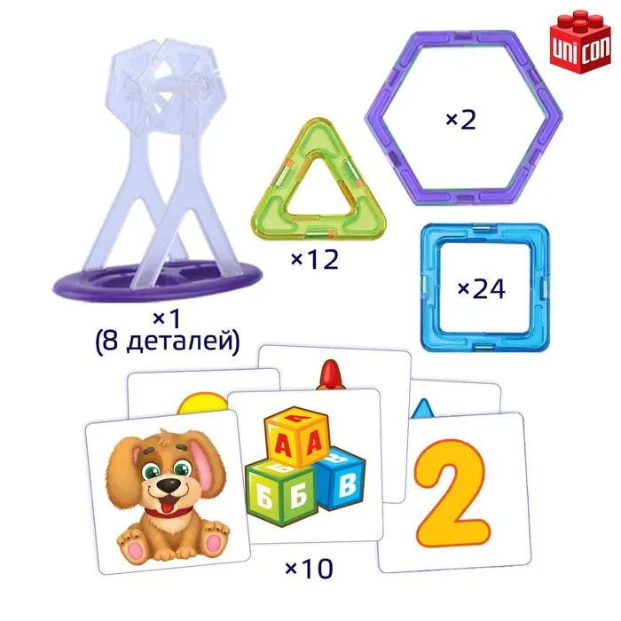Конструктор с магнитными деталями это отличный стартовый комплект — имеющихся деталей будет достаточно для постройки разнообразных моделей.