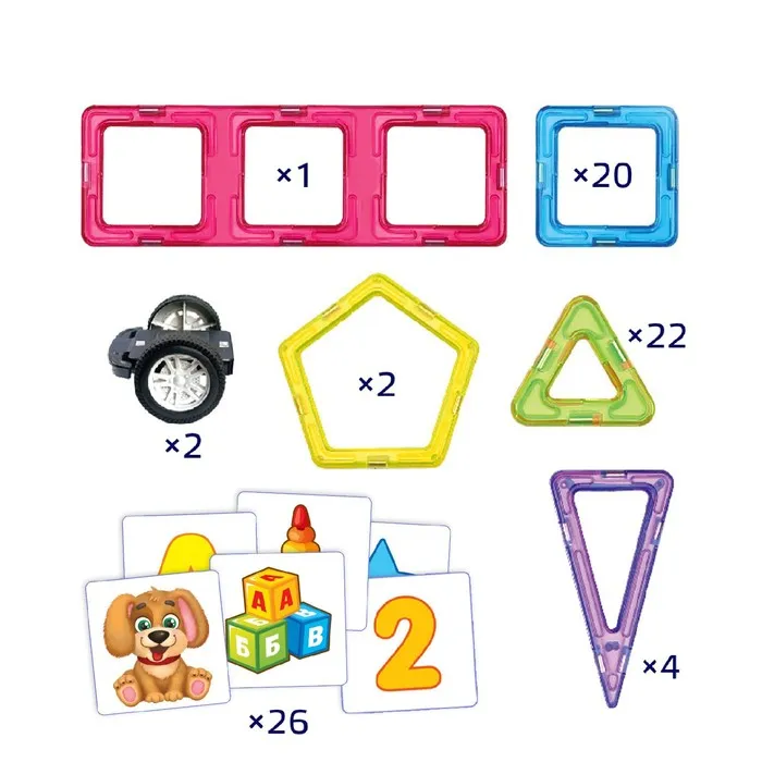 Конструктор с магнитными деталями это отличный стартовый комплект — имеющихся деталей будет достаточно для постройки разнообразных моделей.
