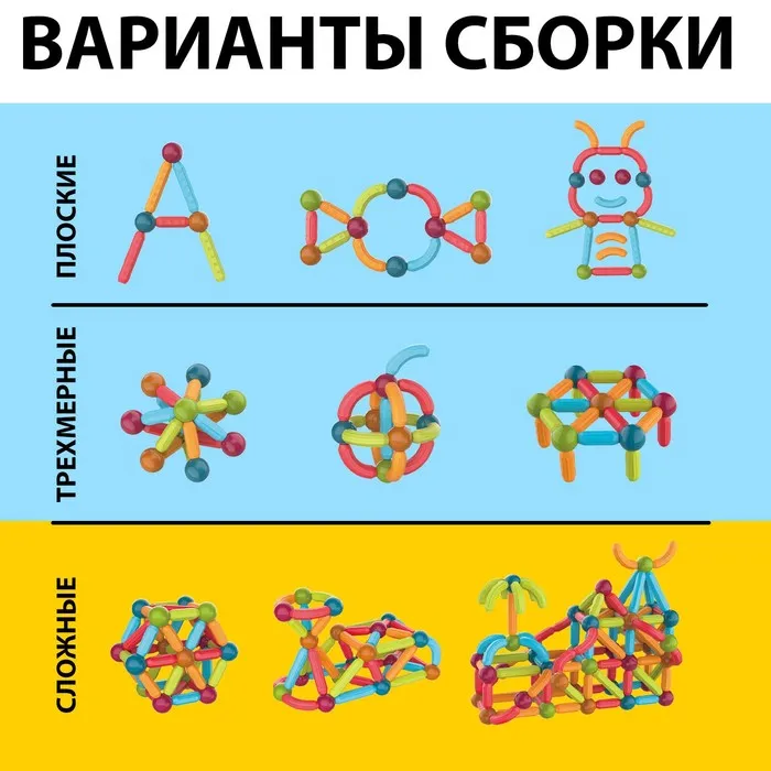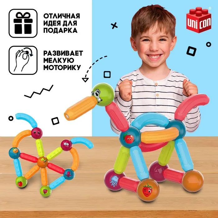 Магнитный конструктор — это набор, детали которого соединяются как по волшебству. Под действием магнитного поля элементы притягиваются друг к другу, открывая неограниченный простор для экспериментов.