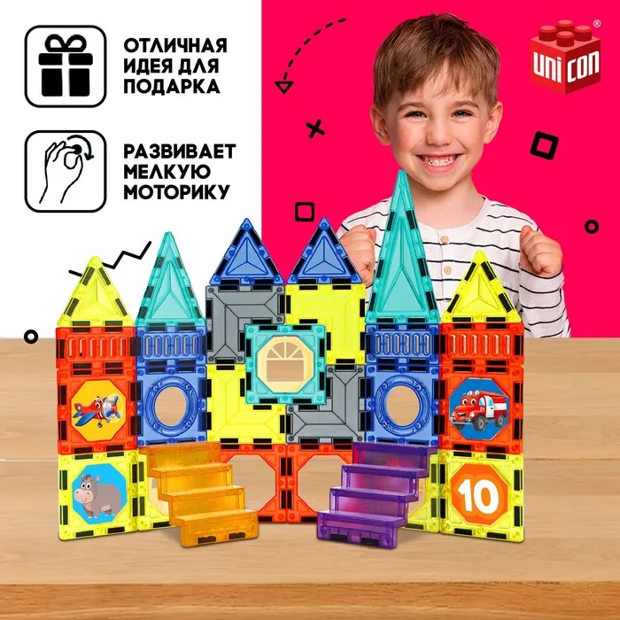 Магнитный конструктор — это набор, детали которого соединяются как по волшебству. Под действием магнитного поля элементы притягиваются друг к другу, открывая неограниченный простор для экспериментов.