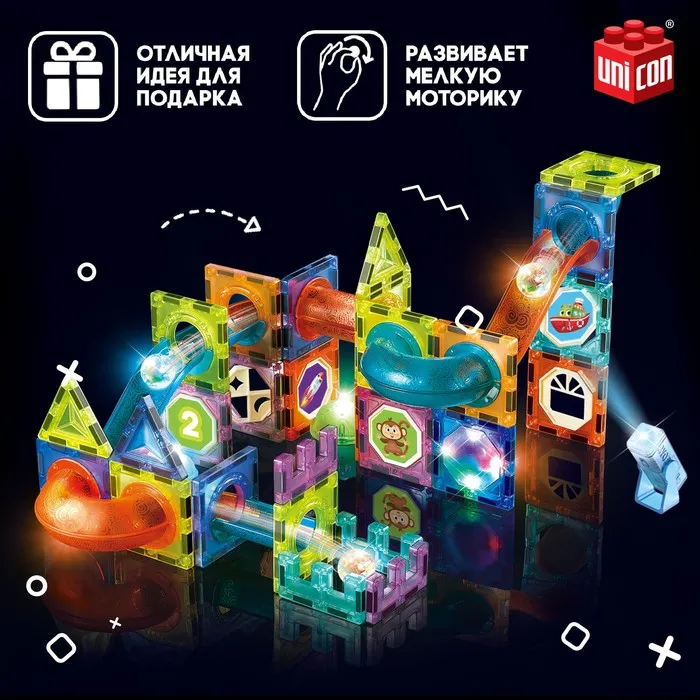 Магнитный конструктор «Магникс», горка из труб, светящийся, 75 деталей — Характеристики