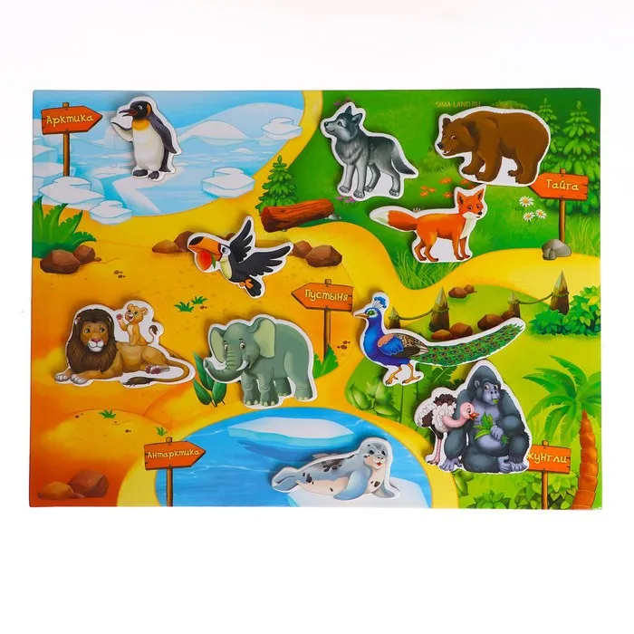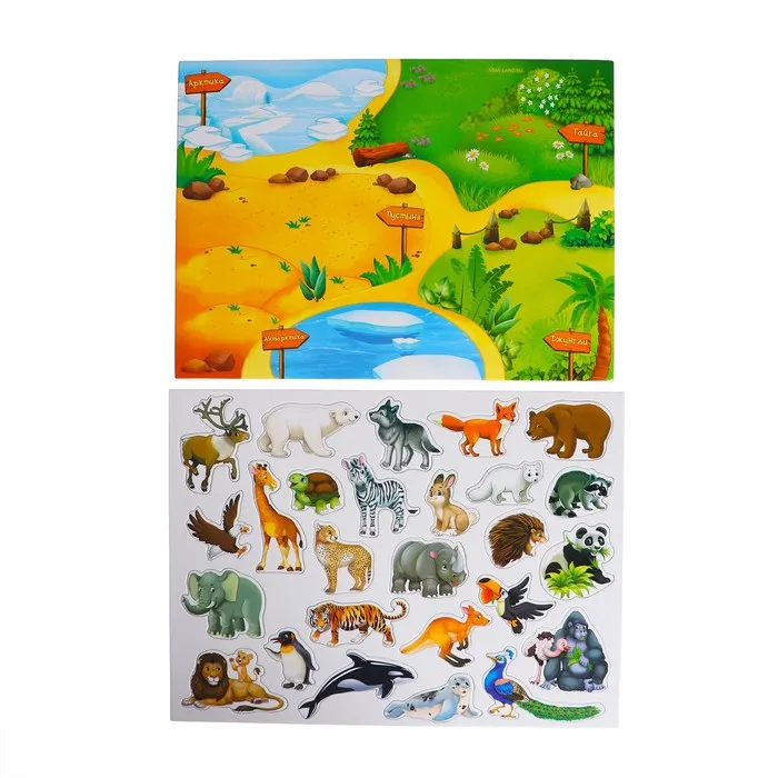 В процессе игры малыш познакомится с животными, их отличительными особенностями и местами обитания.