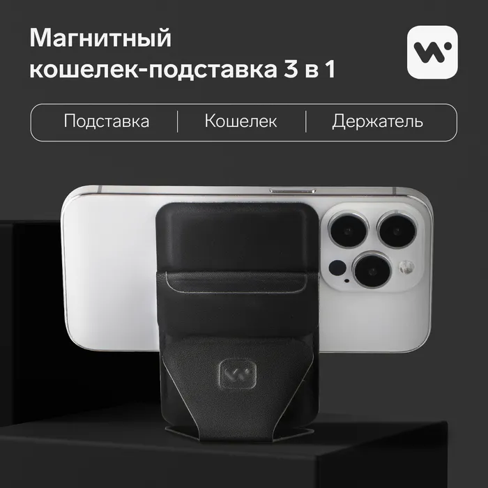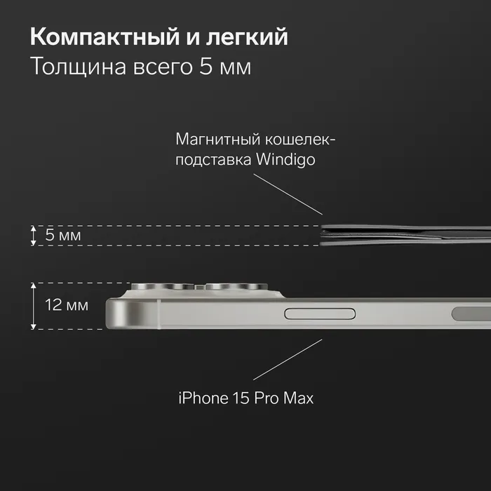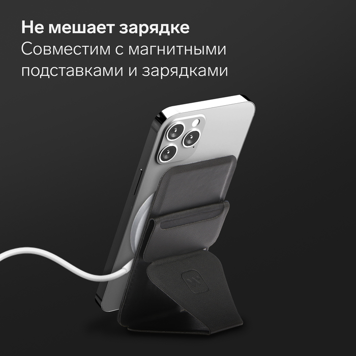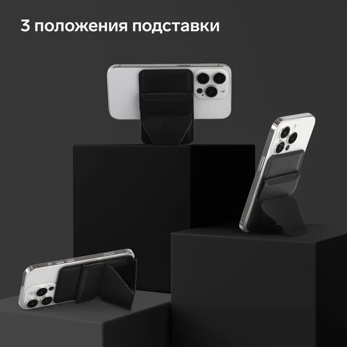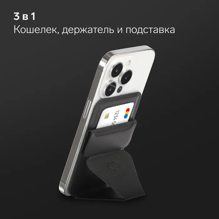 Магнитный кошелёк-подставка Windigo, поддержка Magsafe, для iPhone 12/13/14/15, графитовый чёрный — Характеристики