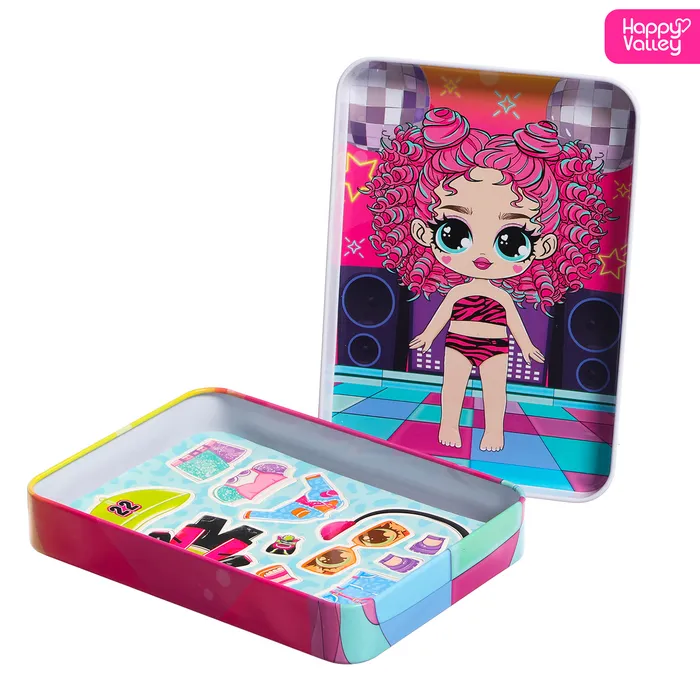 - Жестяная коробка-подложка с изображением персонажа, которого нужно наряжать.