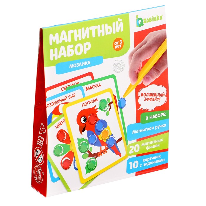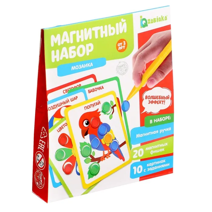 Магнитный набор «Мозаика» — это развивающая карточная игра с цветными фишками и волшебной ручкой.