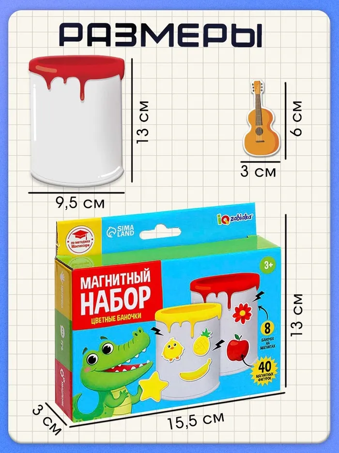 Магнитный набор «Цветные баночки» рекомендован детям старше 3 лет.