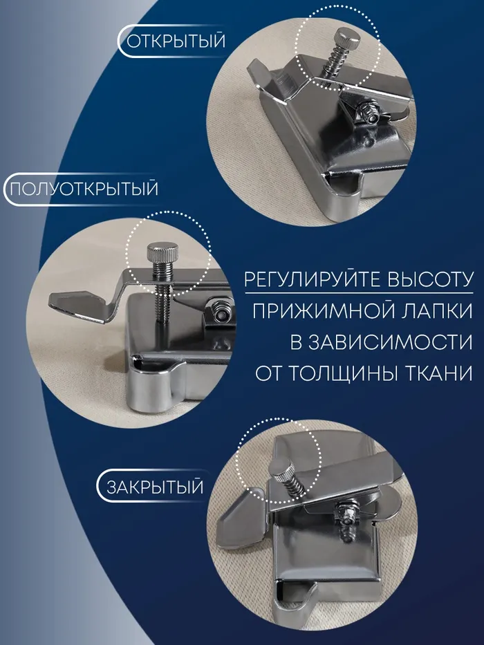 С таким направителем вы сможете быстро сшить ровные и параллельные линии без промахов и погрешностей. Регулировка прижима ткани осуществляется винтом, который дает возможность работать как с тонкими, так и более толстыми тканями. Это значительно расширяет ваши возможности в создании разнообразных проектов.