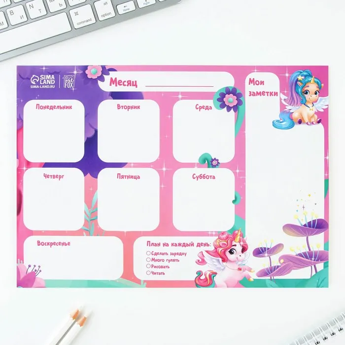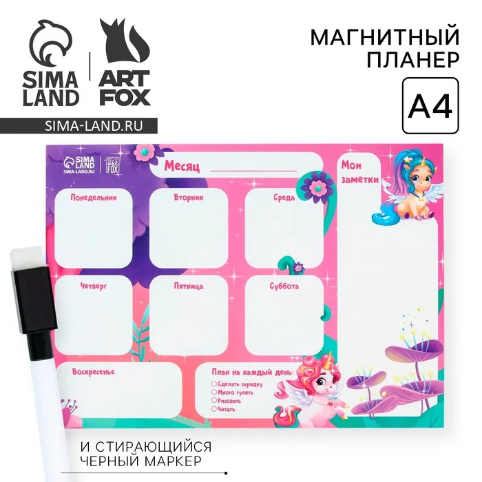 Организуйте свой день с комфортом! Планер станет вашим надёжным ассистентом в решении повседневных задач как дома, так и в офисе. Удобная конструкция с магнитной лентой на задней стороне позволяет надёжно закрепить на любой металлической поверхности, будь то холодильник или доска, а стирающийся маркер позволяет обновлять записи каждый день и даёт возможность всегда иметь важные заметки под рукой и легко систематизировать информацию.