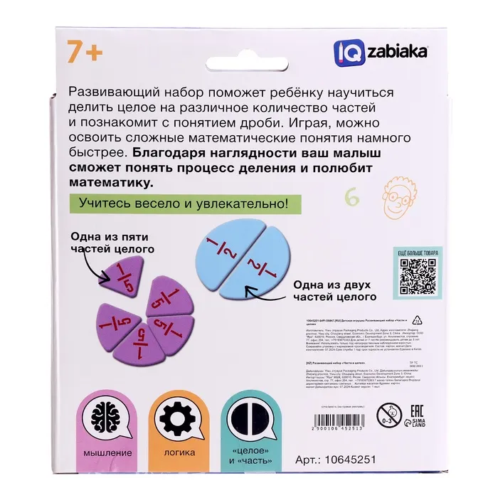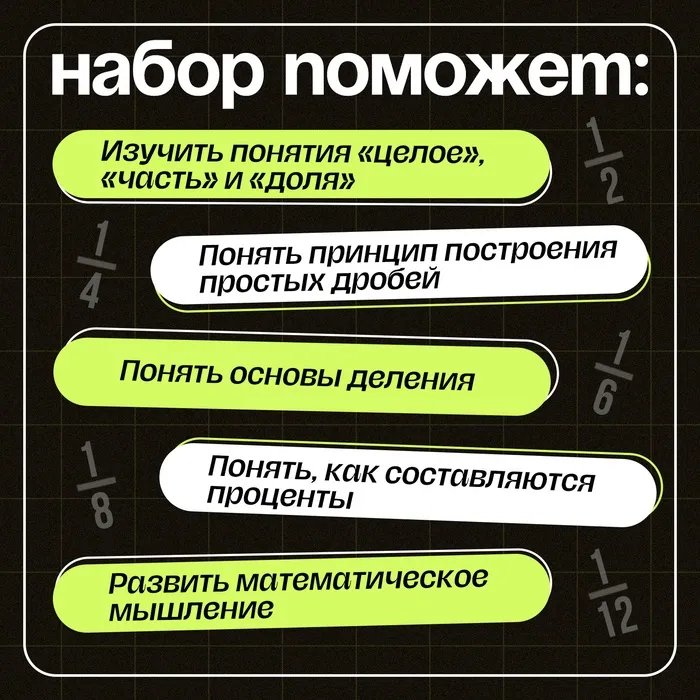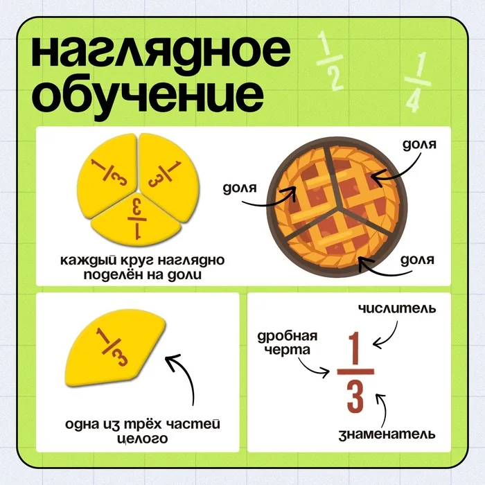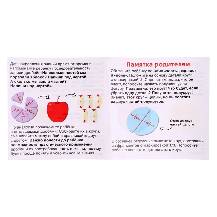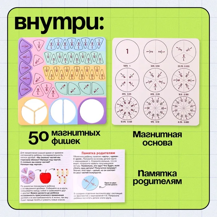 Этот набор станет отличным помощником для детей, осваивающих дроби, и позволит родителям проводить занятия в игровой форме.