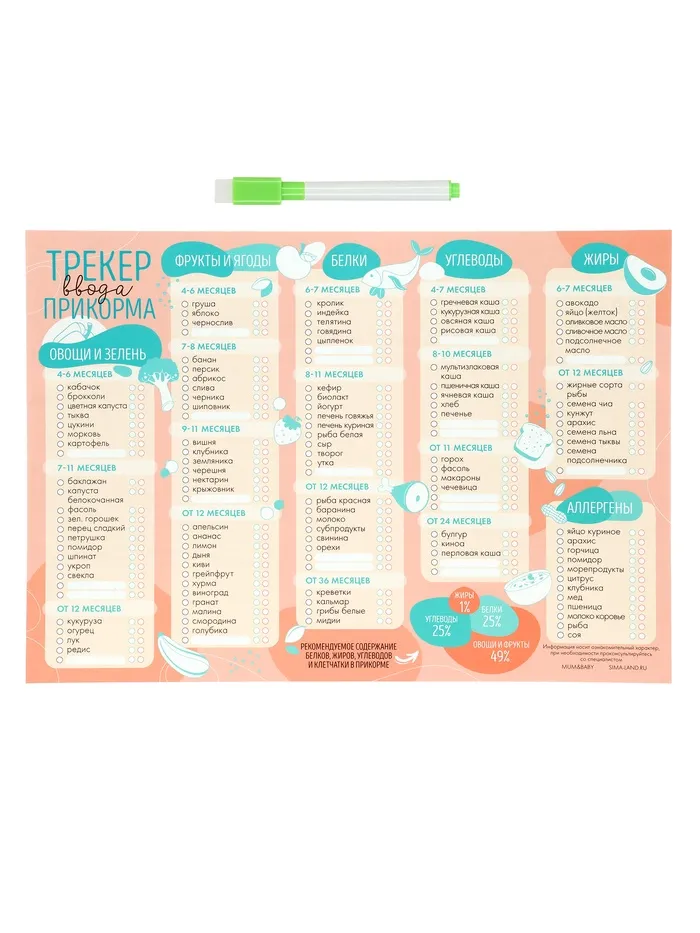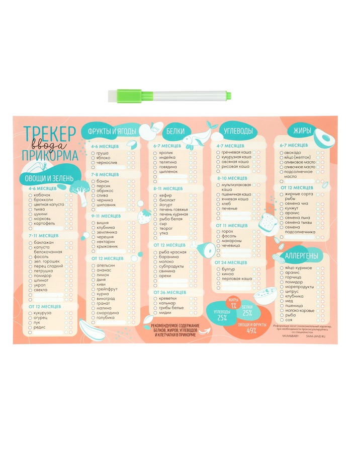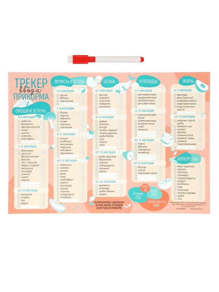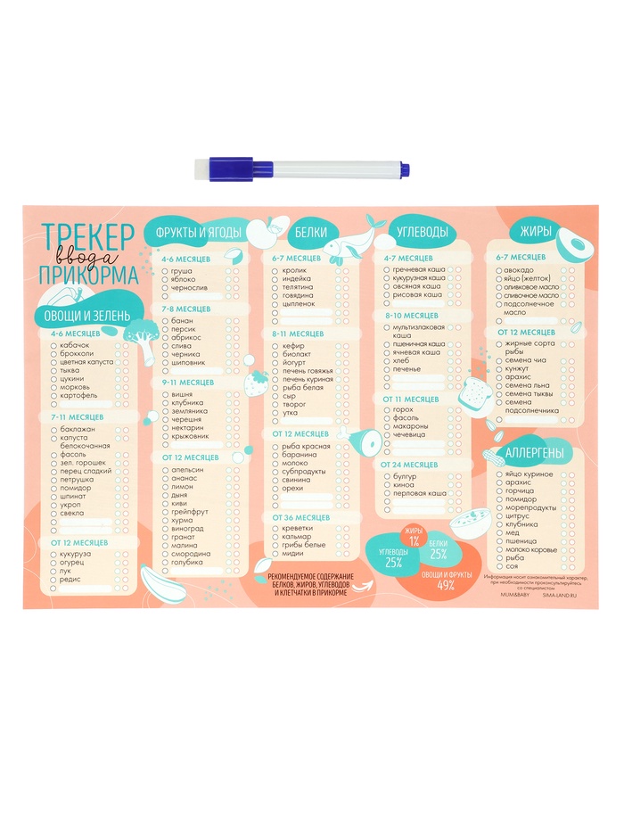 Магнитный трекер ввода прикорма по месяцам для малышей и маркер, бежевый, на 2 магнитах — Характеристики