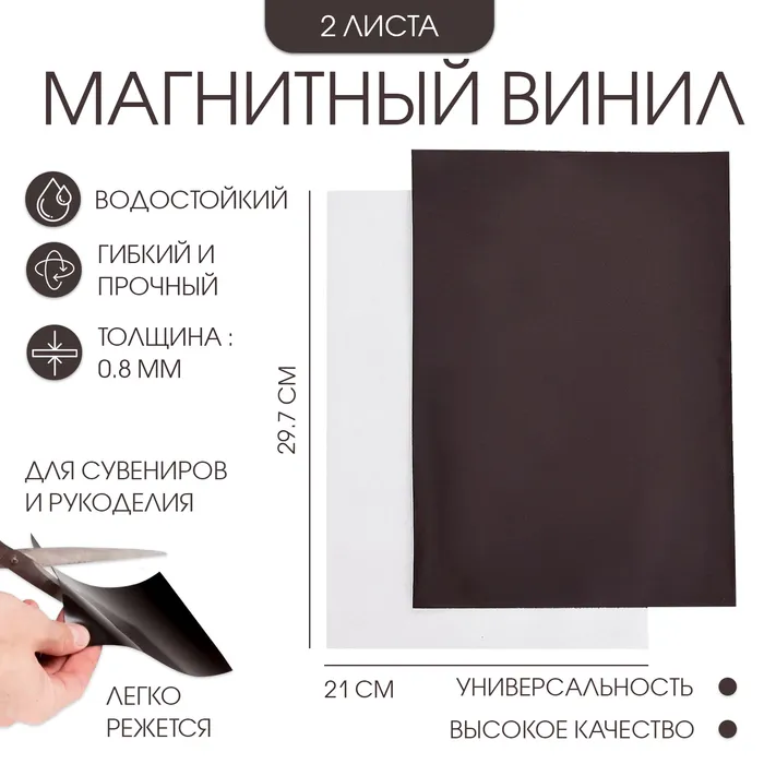 Самоклеящийся магнитный винил быстро приклеивается и надежно удерживается на любой ровной и гладкой поверхности. Магнитный винил широко используется дома и в офисах, в школах и детских садах, в поликлиниках и больницах. Это универсальный фиксатор для различных по весу и размеру полиграфических и рекламных материалов, сувенирной продукции и т.п. Если магнитный винил приклеить к стене, то на нём можно хранить очень легкие предметы: скрепки, гвозди, винты, иголки, маленькие ножи. Винил с клеевым слоем характеризуется удобством использования и широкой сферой применения. Магнитный винил легко режется обычными ножницами.