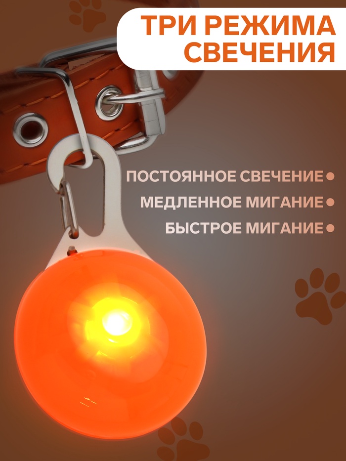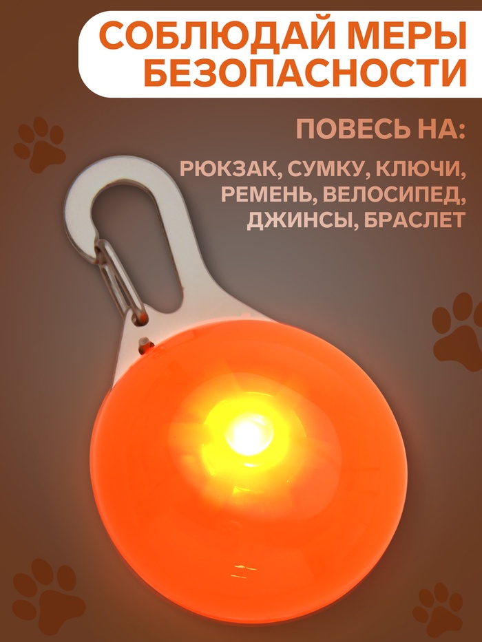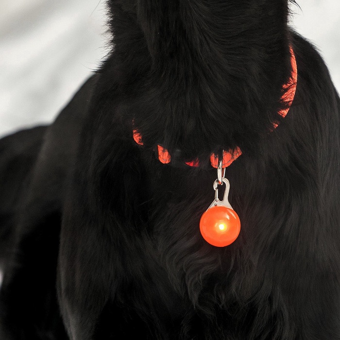 Видимый — даже когда всё вокруг темно. Светящаяся подвеска-маячок «Сфера» — компактный ориентир для ошейника, рюкзака или брелока. Три режима свечения, корпус из пластика и металлическая фиксация — всё для надёжности в движении.