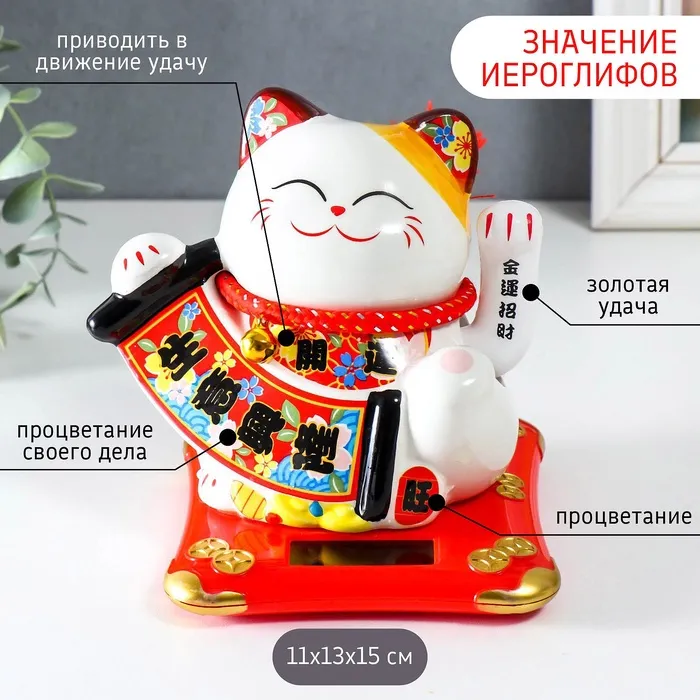 Маятник керамика "Манэки-нэко с гармонью" от солнечных батарей 11х13х15 см — Характеристики
