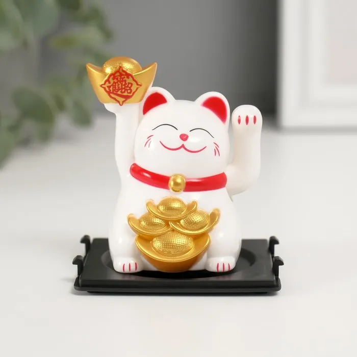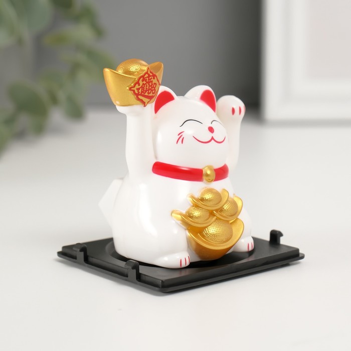 Маятник настольный антистресс «Белый Манэки-нэко со слитками Ямб», пластик, 5×5×6 см — Характеристики