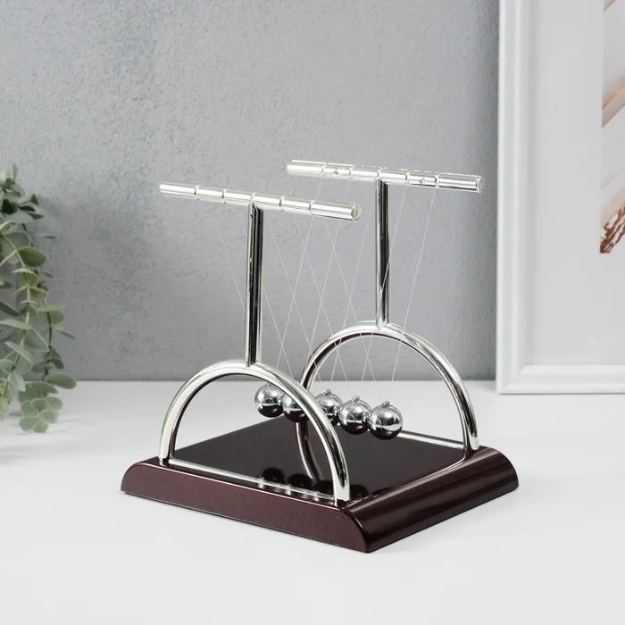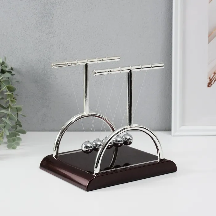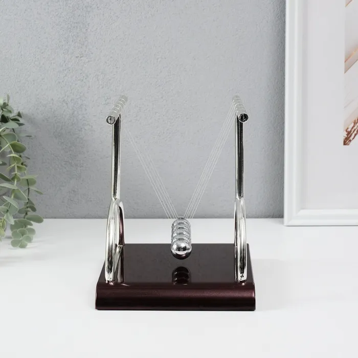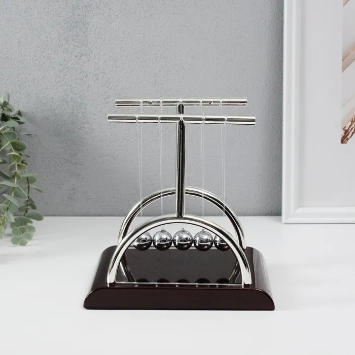 Маятник настольный антистресс «Шары Ньютона. Колыбель техно», квадрат столбик, 18×17×15 см сегодня пользуется огромной популярностью у наших клиентов. Система состоит из подставки и пяти металлических шариков, которые подвешены на леске. Для активации маятника вам необходимо отвести один шарик в сторону и отпустить его. Затем наблюдайте, как шарики с противоположной стороны начинают двигаться в зеркальном отображении с той же скоростью. Через определенное время шарики останавливаются. Продолжительность движения зависит от размера и веса шариков: чем тяжелее и больше шарики, тем дольше процесс, и наоборот.