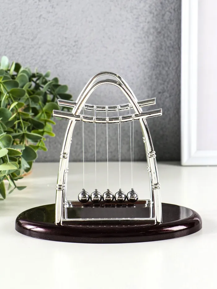 Шары Ньютона сегодня пользуется огромной популярностью у наших клиентов. Система состоит из подставки и пяти металлических шариков, которые подвешены на леске. Для активации маятника вам необходимо отвести один шарик в сторону и отпустить его. Затем наблюдайте, как шарики с противоположной стороны начинают двигаться в зеркальном отображении с той же скоростью. Через определенное время шарики останавливаются. Продолжительность движения зависит от размера и веса шариков: чем тяжелее и больше шарики, тем дольше процесс, и наоборот.